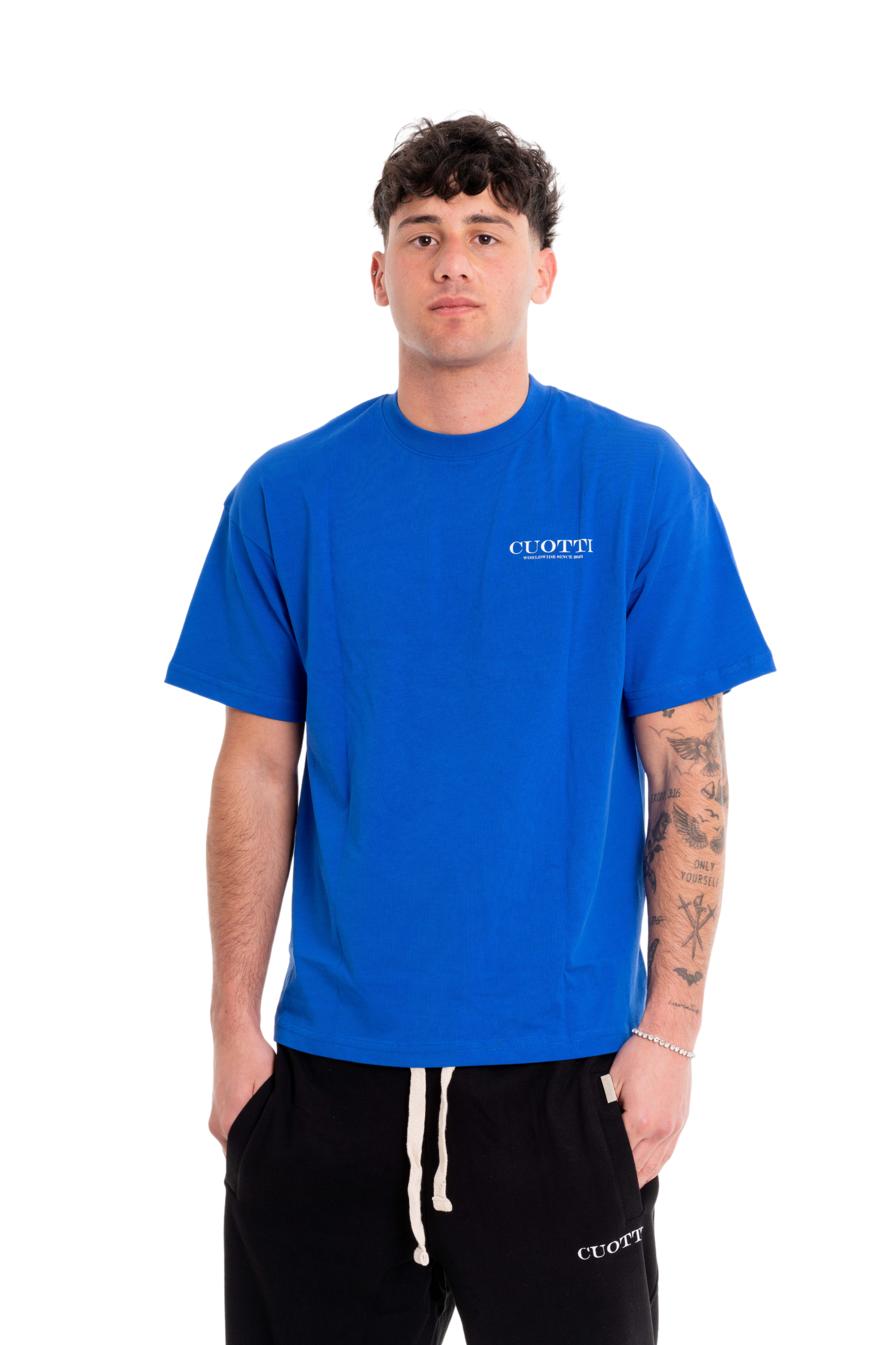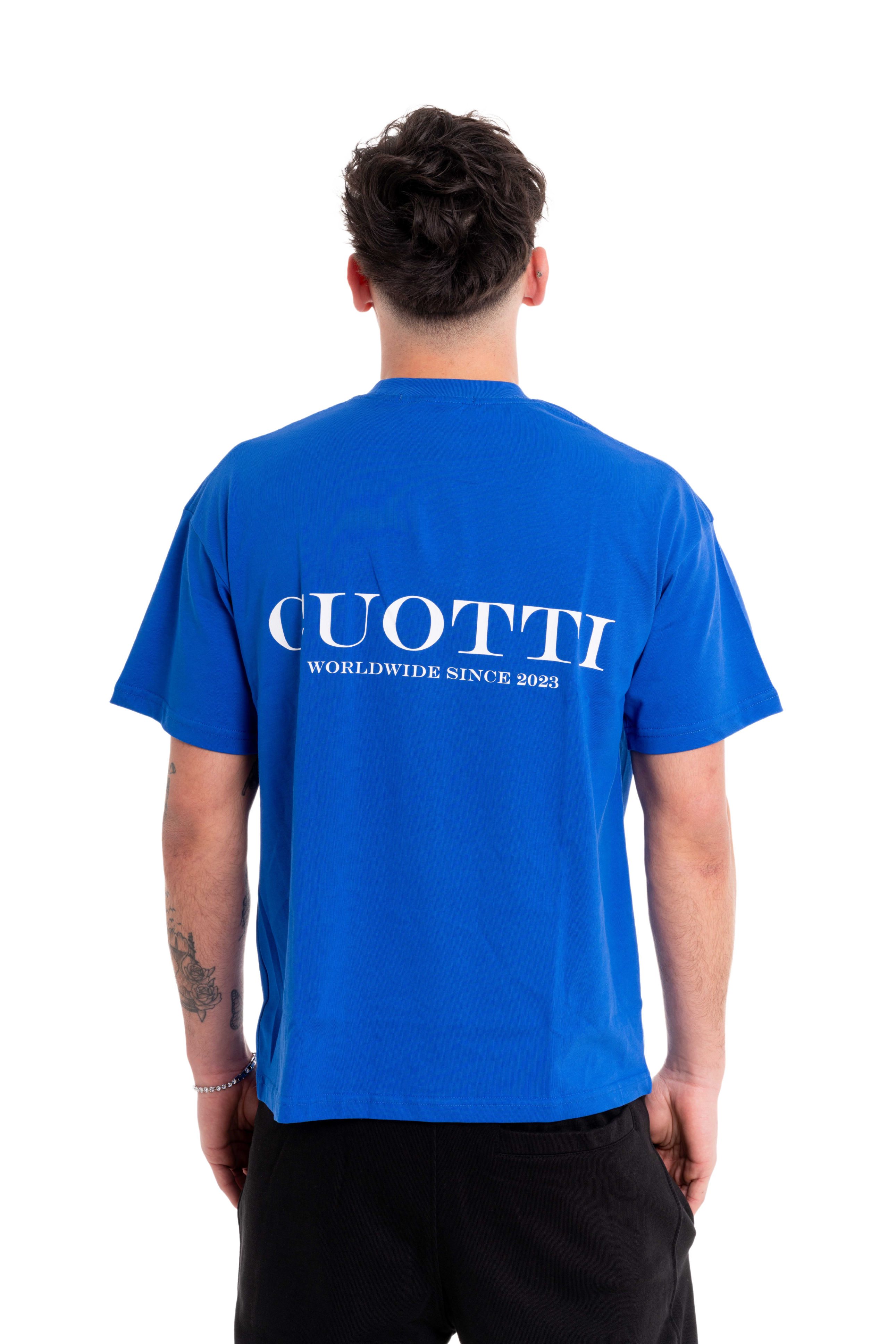 La camiseta azul CUOTTI Worldwide Since combina el lujo español con el espíritu streetwear global. Confeccionada en algodón premium, su diseño exclusivo y su corte cómodo la convierten en un básico de alto nivel. Eleva tu estilo con una prenda pensada para quienes marcan la diferencia. Stock limitado.