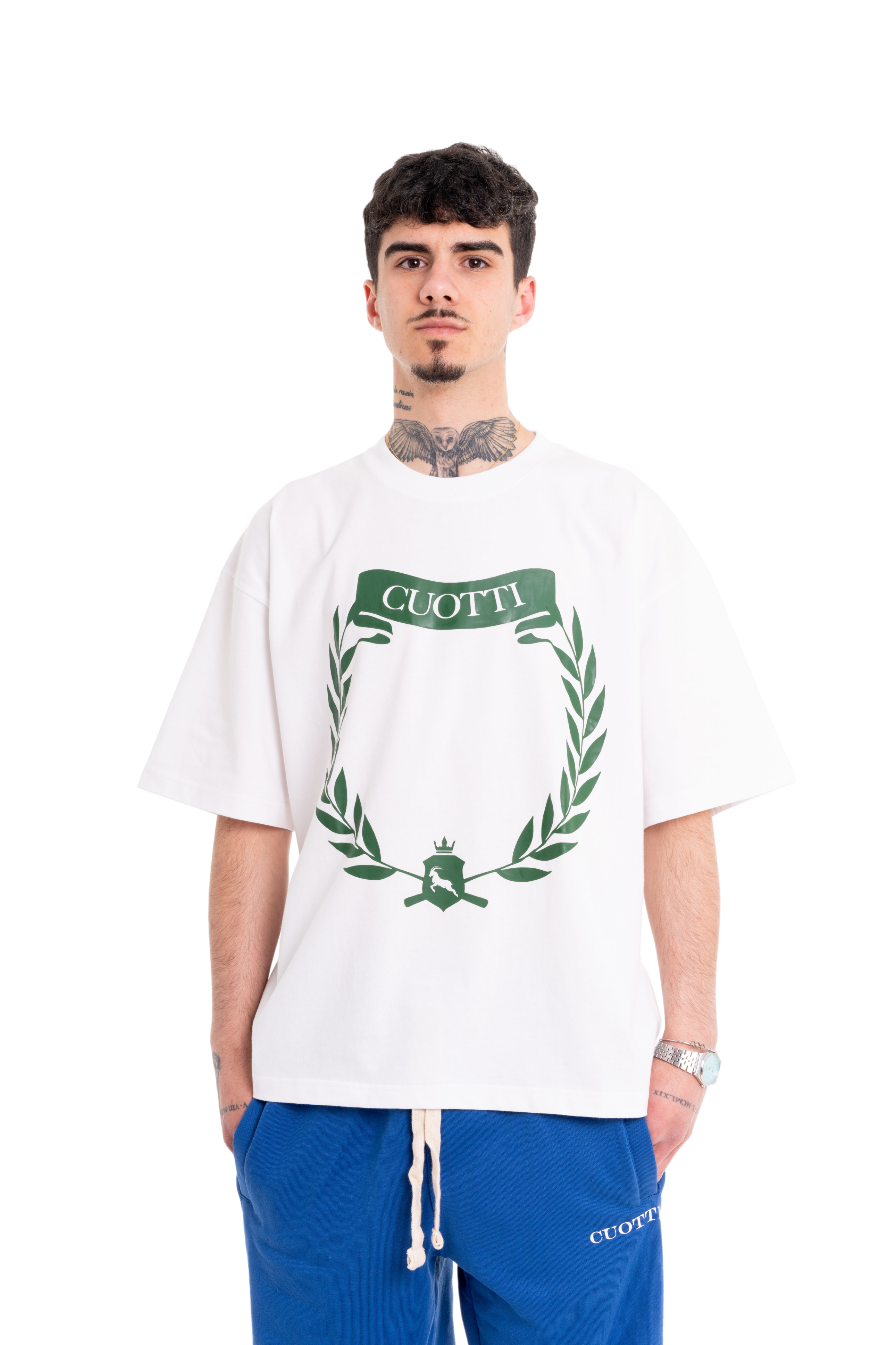 La camiseta blanca con estampado Corona Laurel combina tradición y modernidad en una prenda única. Confeccionada en algodón premium y un diseño exclusivo, es ideal para quienes buscan vestir con elegancia y carácter. Stock limitado.