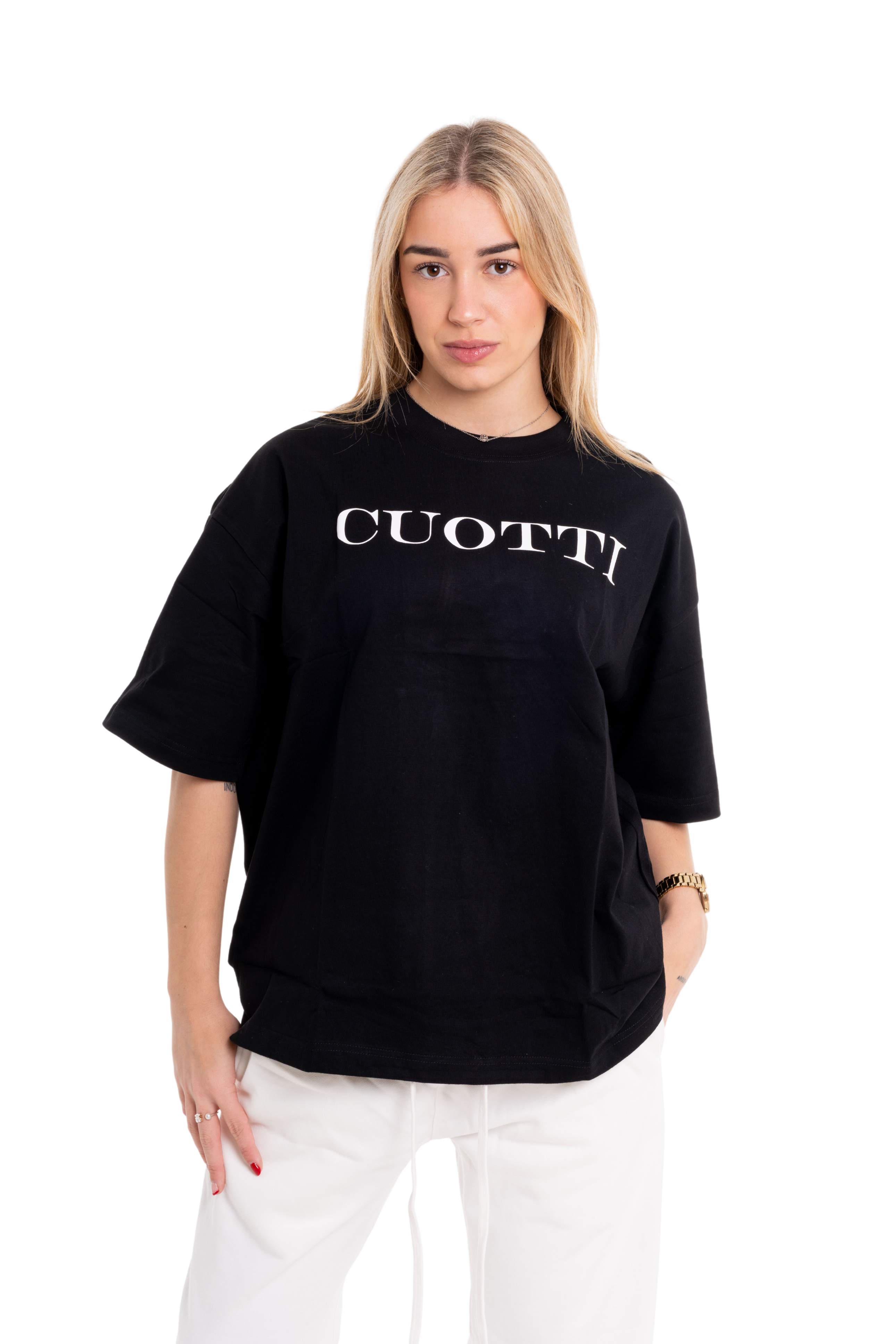 La camiseta negra con logotipo grande CUOTTI combina impacto visual y sofisticación. Confeccionada en algodón premium, esta prenda es para quienes saben que el lujo también se expresa con actitud.